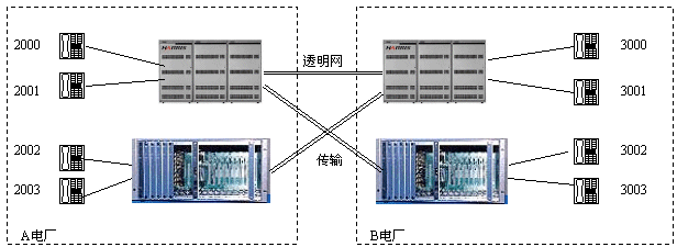 適用范圍:這種應(yīng)用適用于對(duì)電話系統(tǒng)安全性要求嚴(yán)格的場(chǎng)合,如電力系統(tǒng)行政交換機(jī)與調(diào)度交換機(jī)就可以以上述方式實(shí)現(xiàn)備份,從而實(shí)現(xiàn)行政或調(diào)度交換機(jī)某一臺(tái)不能工作時(shí),依然可以通過備份系統(tǒng)打電話。