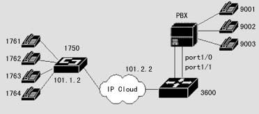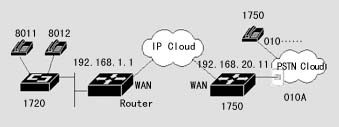 1720也可以通過器語音端口連接到PSTN,通過二次撥號,使得兩地的PSTN用戶可以通過IP網(wǎng)絡(luò)互相通話,而話費(fèi)只是市話的費(fèi)用。