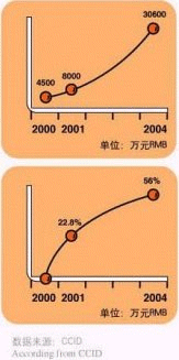 - 在CRM方面,2000年產(chǎn)值為50億美元,預(yù)計在2004年市場產(chǎn)值將達(dá)到190億美元。