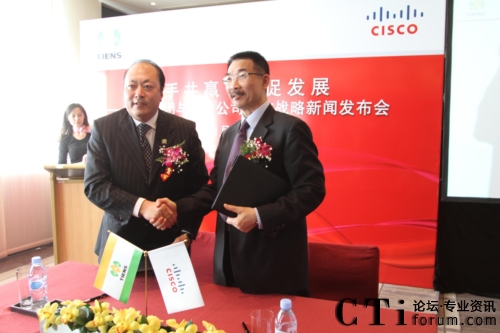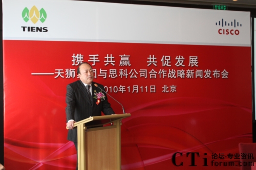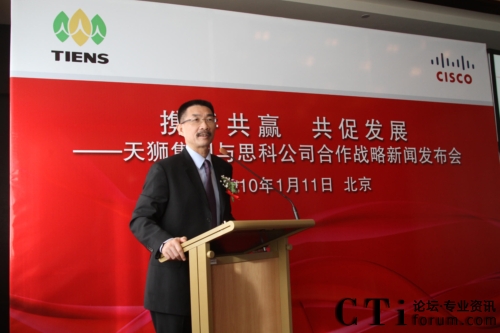 CTI論壇(ctiforum)1月12日消息(記者 張塵):2010年1月11日,北京——“攜手共贏 共促發(fā)展——天獅集團(tuán)與思科公司戰(zhàn)略項(xiàng)目新聞發(fā)布會(huì)”在北京召開,雙方共同宣布,天獅集團(tuán)國(guó)際健康產(chǎn)業(yè)園網(wǎng)絡(luò)平臺(tái)成功啟用,并正式達(dá)成合作戰(zhàn)略。天獅集團(tuán)董事長(zhǎng)兼總裁李金元先生與思科全球副總裁、思科中國(guó)副董事長(zhǎng)兼總裁林正剛先生出席新聞發(fā)布會(huì),并進(jìn)行簽約儀式。通過(guò)本次強(qiáng)強(qiáng)聯(lián)合,思科面向服務(wù)的網(wǎng)絡(luò)架構(gòu)(SONA)全面部署于天獅集團(tuán)國(guó)際健康產(chǎn)業(yè)園,為天獅集團(tuán)業(yè)務(wù)的穩(wěn)定持續(xù)發(fā)展以及信息化水平的進(jìn)一步提升提供了可靠保證,同時(shí)也為雙方未來(lái)更深層次的合作打下了堅(jiān)實(shí)的基礎(chǔ)。