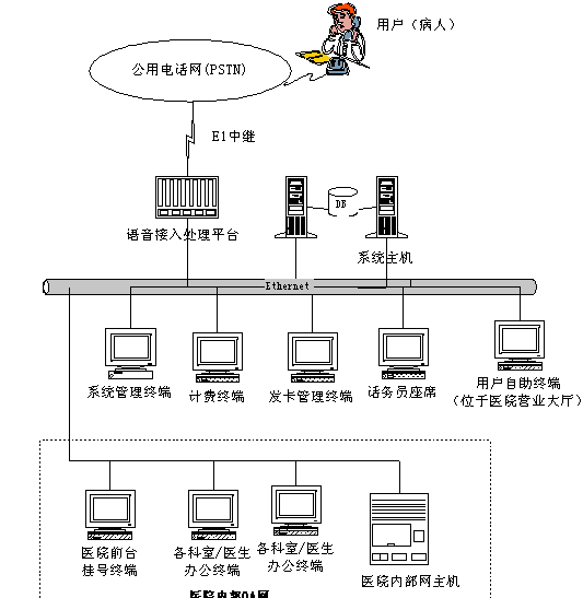 3、 系統(tǒng)需要跟醫(yī)院的人工掛號終端和自助掛號終端聯(lián)網(wǎng),電話掛號、自助掛號和醫(yī)院人工掛號三者必須結(jié)合起來,進(jìn)行統(tǒng)一排隊。其中自助掛號和人工掛號的排隊時間以手工輸入電腦的時間為準(zhǔn),電話掛號以電話輸入時間為準(zhǔn)。
