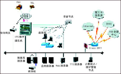 本項目采用新太科技交互式電話會議系統(tǒng)2.0版,系統(tǒng)各組成部分見圖1。前端接入設(shè)備采用SUNTEK-IPS數(shù)字排隊機(jī),負(fù)責(zé)多方電話會議用戶和其他業(yè)務(wù)用戶接入的交換排隊、自動語音資源提供、座席服務(wù)資源提供、錄音、計費(fèi)等等。SUNTEK-IPS數(shù)字排隊機(jī)是新太科技最新一代軟交換平臺,是整個系統(tǒng)平臺的核心。它綜合了新太科技?xì)v代平臺的優(yōu)勢,采用世界上最先進(jìn)的軟交換(包交換)技術(shù)和CompactPCI技術(shù),支持主控CPU卡冗余和熱拔插,擁有更大規(guī)模的交換系統(tǒng)總線(CompactPCI的CTBus總線共有4096個時隙,理論上,單個機(jī)框可以支持4k×4k的交換)。SUNTEK-IPS數(shù)字排隊機(jī)基于自主開發(fā),擁有自主產(chǎn)權(quán),保證了極高的性價比,已經(jīng)通過了信息產(chǎn)業(yè)部入網(wǎng)認(rèn)證。SUNTEK-IPS數(shù)字排隊機(jī)現(xiàn)已在十多個省成功開展全省業(yè)務(wù)的事實(shí),證明了它具備技術(shù)先進(jìn)、可靠性強(qiáng)等特點(diǎn)。