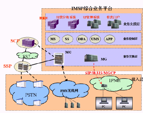 4、 支持標準的SIP/H.323協(xié)議,IMSP支持IP接入,系統(tǒng)可平滑過渡到下一代網(wǎng)絡(luò)(NGN),逐步建立符合標準的服務(wù)、網(wǎng)絡(luò)和終端,徹底取代原有相對獨立的應(yīng)用服務(wù)、通信網(wǎng)絡(luò)和終端。;
