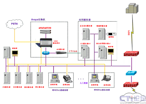 95190呼叫中心項目采用國際知名品牌AVAYA交換機(jī)作為系統(tǒng)接入處理,提供了包括數(shù)據(jù)庫服務(wù)器、文件服務(wù)器、CTI/IVR服務(wù)器、中間件服務(wù)器等相關(guān)后臺強(qiáng)有力的支撐服務(wù)設(shè)備,提供了三層網(wǎng)絡(luò)交換機(jī)、硬件防火墻等網(wǎng)絡(luò)設(shè)備等。整個系統(tǒng)達(dá)到960路中繼接入、180路人工座席、20路IP座席、360路IVR、15路傳真;支持7號信令、ISDN信令等信令協(xié)議;提供人工座席的實(shí)時同步錄音。