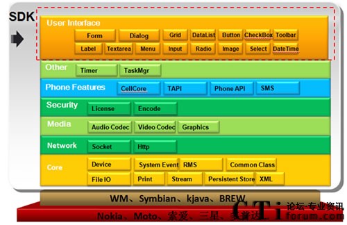 據(jù)新太科技內(nèi)部相關(guān)人員介紹,mWAY的技術(shù)架構(gòu),一方面可以支持電信網(wǎng)絡各種各樣的接入,保證和運營商已有的網(wǎng)絡的互聯(lián)互通,同時也支持和移動互聯(lián)網(wǎng)手機之間的連接,支持相關(guān)音頻、視頻的呼叫、傳送。業(yè)務接口可以給第三方應對研發(fā)需求,手機終端有相關(guān)的引擎,滿足手機終端的業(yè)務研發(fā)的需求,這部分有一個手機客戶端軟件,是一個移動性的引擎。這個引擎移植在手機終端客戶端上,給上層提供統(tǒng)一的解析開放系統(tǒng)。
