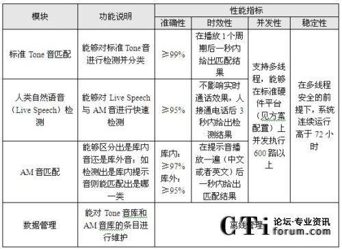 圖中,Tone音匹配采用模式匹配方法,可以實(shí)現(xiàn)對(duì)振鈴音,忙音,空號(hào),不可達(dá)音等100多種標(biāo)準(zhǔn)提示音的識(shí)別。AM(Answering Machine)音匹配主要負(fù)責(zé)識(shí)別傳真機(jī)、自動(dòng)答錄機(jī)等機(jī)器語(yǔ)音,同樣采用模式匹配方法,將收到的語(yǔ)音與標(biāo)準(zhǔn)樣本庫(kù)進(jìn)行比對(duì)。人類(lèi)自然語(yǔ)音檢測(cè)的功能主要通過(guò)人真實(shí)聲音的檢測(cè),來(lái)判斷是否需要進(jìn)行語(yǔ)音匹配。