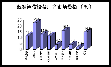 。1)市場規(guī)模: 年初各大運(yùn)營商IP實驗網(wǎng)的開通以及聯(lián)通覆蓋300余城市的IP網(wǎng)絡(luò)大規(guī)模建設(shè),年中ChinaNet大提速與3期擴(kuò)容項目實施以及CNCnet開通,年末CMnet骨干網(wǎng)一期工程上馬、2000年中國數(shù)據(jù)通信設(shè)備市場可謂是熱點頻仍。根據(jù)Frost&Sullivan分析,年內(nèi)網(wǎng)絡(luò)交換機(jī)、訪問產(chǎn)品、 路由器、集線器等數(shù)據(jù)通信主要設(shè)備市場規(guī)模達(dá)到96億人民幣,同比增長36%,數(shù)據(jù)通信設(shè)備市場再次進(jìn)入高速增長期。