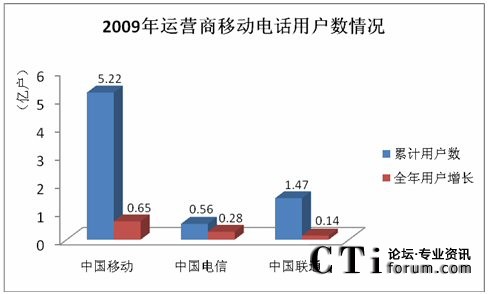 截至2009年12月31日,國內(nèi)移動電話用戶累計(jì)達(dá)到74738.4萬戶,中國移動的用戶總數(shù)已達(dá)到5.22億戶,累計(jì)客戶凈增長6503.3萬戶,在三大運(yùn)營商中,中國移動的用戶保有量和每月新增用戶數(shù)份額仍然最大。