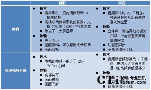 網(wǎng)真產(chǎn)品與企業(yè)的其他視覺溝通產(chǎn)品不同,不同于以軟件為基礎(chǔ)的視頻通信應(yīng)用、電話視頻、以硬件為基礎(chǔ)的桌面視頻系統(tǒng)及群體視頻會議等各類傳統(tǒng)視頻系統(tǒng)。Frost