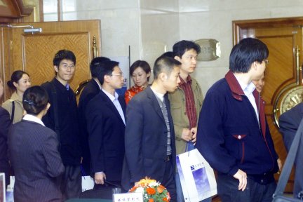 意外之一:預(yù)定的簽到時(shí)間是下午兩點(diǎn),根據(jù)一般與會(huì)者都會(huì)遲到的"原理",組委會(huì)并不著急,沒(méi)想到工程師們出于守時(shí)的習(xí)慣,不少人提前了一、二十分鐘就到達(dá)了,簽到處頓時(shí)人滿為患。