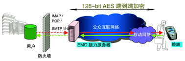 鑒于用戶目前正使用互聯(lián)網(wǎng)郵件系統(tǒng),愛(ài)立信提供了EMO Email Push互聯(lián)網(wǎng)版解決方案。方案需要將Email Push應(yīng)用的用戶在愛(ài)立信EMO接力服務(wù)器上注冊(cè),同時(shí)在用戶的手機(jī)上安裝客戶端軟件即可;