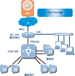 TDMPBX交換機多采用PRI或中國No.1信令(CAS)。TDM小交換機通過E1網(wǎng)關(guān)接入IMS系統(tǒng),使小交換機之后的電話終端用戶可以享受IMS典型業(yè)務(wù)。經(jīng)愛立信系統(tǒng)測試認(rèn)證的E1網(wǎng)關(guān)有Mediatrix和Audiocodes等多家廠商的產(chǎn)品。