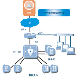 適用于支持模擬線的小交換機,經(jīng)SIPIAD設(shè)備將模擬線路轉(zhuǎn)換為基于IP的SIP信令流和媒體流,接入IMS系統(tǒng)。經(jīng)愛立信測試認(rèn)證過的IAD產(chǎn)品有Mediatrix、Audiocodes、Linksys等。