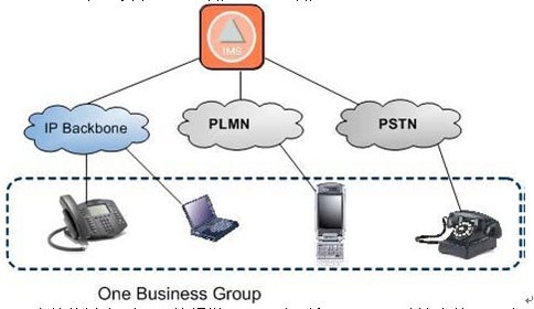 與終端的類(lèi)型和接入方式無(wú)關(guān)。企業(yè)或集團(tuán)用戶的成員可以使用不同類(lèi)型的終端, 通過(guò)不同的接入網(wǎng)絡(luò)接入到IMS。在IMS的控制下完成多媒體業(yè)務(wù)的通信過(guò)程,實(shí)現(xiàn)虛擬專用網(wǎng)絡(luò)的應(yīng)用。