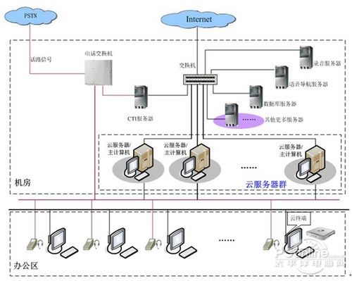 清華同方云終端呼叫中心解決方案,基于計算與操作相分離的理念,采用清華同方自主研發(fā)并生產(chǎn)的云終端設(shè)備作為終端用戶硬件操作平臺,云服務(wù)器采用滿足需求的高端PC即可。清華同方云終端呼叫中心解決方案網(wǎng)絡(luò)拓撲為星型結(jié)構(gòu),在TCP/IP協(xié)議百兆交換到桌面的以太網(wǎng)環(huán)境下,提供了全方面兼容Windows的軟硬件一體化解決方案。本系統(tǒng)基于清華同方安全自主研發(fā)的VDP協(xié)議為核心的Windows終端虛擬桌面服務(wù)技術(shù),終端呈現(xiàn)業(yè)務(wù)工作界面,所有的計算、存儲都由云服務(wù)器端完成,在保證本地正常工作的同時,避免了使用PC機作為客戶端的資源浪費,在降低了總體擁有成本的基礎(chǔ)上,增強了呼叫中心信息系統(tǒng)的穩(wěn)定性