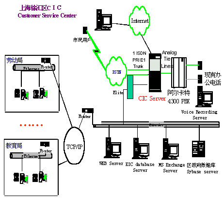 上海市徐匯區(qū)市民咨詢(呼叫)中心的第一期工程包括語音自動應答IVR、按需傳真Fax on Demand、語音郵件Voice Mail、網(wǎng)頁互動Web Interaction、座席屏幕彈出Agent Screen Pop、報表以及語音記錄等功能。該中心具有以下特點,很好地滿足了徐匯區(qū)政府的要求。
