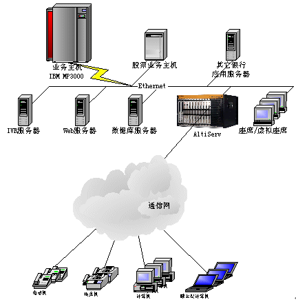 。。目標(biāo)是建立一個(gè)功能完善的客戶服務(wù)中心,涵蓋自動(dòng)語音應(yīng)答(IVR)、人工座席、WEB呼叫、客戶資料查詢統(tǒng)計(jì)以及與現(xiàn)有的銀行其他業(yè)務(wù)系統(tǒng)的結(jié)合。整個(gè)系統(tǒng)采用奧迪堅(jiān)呼叫中心系統(tǒng)AltiCenter,系統(tǒng)以一個(gè)特定號(hào)碼xxxxx作為呼叫中心的系統(tǒng)號(hào)碼(也可提供多個(gè)電話號(hào)碼),集中受理客戶的業(yè)務(wù)需求,為客戶提供綜合性服務(wù)。它能與Internet、資料庫系統(tǒng)很好地集成,實(shí)現(xiàn)資料共用和各種其他不同的業(yè)務(wù)功能。