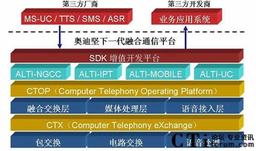 強雄飛:首先,從技術標準上,奧迪堅具有獨一無二的CTX(Computer Telephony Exchange)技術標準,完全自主知識產(chǎn)權的融合交換技術,可以將IP包交換、電路交換及語音處理的機制融合在一起,可以將IP-PBX與CTI功能的核心融合?梢詫崿F(xiàn)完全無縫融合的應用,將IP語音處理與模擬語音處理統(tǒng)一地在一個系統(tǒng)上實現(xiàn),將呼叫中心應用與辦公電話應用有機地整合在一起。