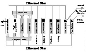 如果我們采用基于CompactPCI標(biāo)準(zhǔn)的刀片服務(wù)器系統(tǒng)來(lái)實(shí)現(xiàn),系統(tǒng)可能就是完全另外一種樣子(如圖1),這樣的實(shí)現(xiàn),首先系統(tǒng)體積小,只要一個(gè)刀片服務(wù)器機(jī)箱;第二,系統(tǒng)基于標(biāo)準(zhǔn)的體系架構(gòu),開發(fā)和維護(hù)容易,成本低廉;第三,系統(tǒng)非常好地集成了語(yǔ)音通信和IP通信,易于部署增值電信業(yè)務(wù);第四,系統(tǒng)具有較好的可擴(kuò)展性,因?yàn)楸嘲逄峁┝素S富的帶寬資源,同時(shí)單位空間內(nèi)豐富的插槽,可以安裝更多的服務(wù)器刀片,提供了充足的計(jì)算資源;第五,系統(tǒng)還可以利用各種高可靠性和高可管理性的特點(diǎn)。
