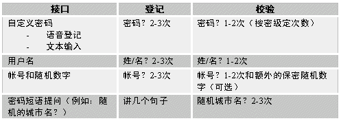 對Nuance方案,鑒別使用的密碼接口方案或類型都不受限制。各公司可自由選擇最適合于應用系統(tǒng)的任何接口;如果以后覺得別的接口更加有效,用戶無需選擇新的技術提供商即可改變接口。聲紋鑒別中的這種靈活性和實用性是前所未有的。下表列出部分Nuance可實現(xiàn)的不同用戶接口: