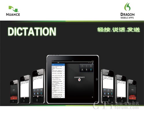 2)聲龍聽寫(Dragon Dictation)適用于iPad™、iPhone™和第2代及第3代iPod touch™(需要外接麥克風(fēng))。