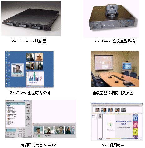 如下圖所示,ViewOffice由會(huì)議室型終端ViewPower,客戶端軟件ViewPhone,客戶端即時(shí)消息軟件ViewIM,多點(diǎn)控制服務(wù)器ViewExchange