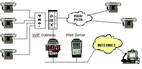 PBX,它用于在LAN上完成呼入及呼出操作。這種方案對(duì)小型辦公室非常有用。它不僅可以實(shí)現(xiàn)傳統(tǒng)的硬件PBX的所有特性,而且還具有更多的優(yōu)勢(shì),因?yàn)檫@種PBX是通過(guò)軟件的方式來(lái)實(shí)現(xiàn)的。