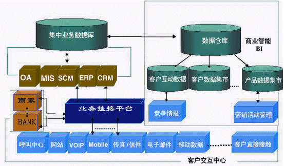 (4)一體化方案:呼叫中心、商業(yè)智能既可以互相獨立,又是層層遞進,企業(yè)可以分布實施,也可以根據(jù)實際需要同時實施多個部分。