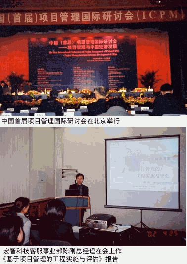- 2002年4月24日-26日,由國(guó)家經(jīng)貿(mào)委、中國(guó)科學(xué)院、國(guó)家外國(guó)專(zhuān)家局、聯(lián)合國(guó)工業(yè)發(fā)展組織共同主辦的中國(guó)首屆項(xiàng)目管理國(guó)際研討會(huì)在北京舉行,來(lái)自30多個(gè)國(guó)家的800多名代表參加了此次大會(huì),宏智公司代表也應(yīng)邀出席了研討會(huì)。