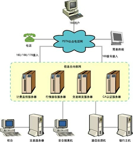4.計費監(jiān)控服務(wù)器:對股民電話委托的特定信息服務(wù)進(jìn)行計費管理。