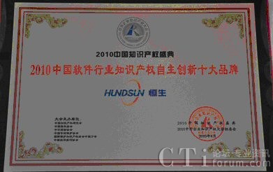 CTI論壇(ctiforum)5月7日消息(記者 楊佳林):4月25-26日,在北京人民大會(huì)堂舉辦的“2010中外知識(shí)產(chǎn)權(quán)大會(huì)”上,恒生電子股份有限公司憑借其自主研發(fā)并具有自主知識(shí)產(chǎn)權(quán)的HSIPCC產(chǎn)品榮獲“中國(guó)軟件行業(yè)知識(shí)產(chǎn)權(quán)自主創(chuàng)新十大品牌”。