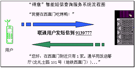 短信服務(wù)商只需通過"得意"口語對話系統(tǒng)與知識庫(或者相關(guān)的數(shù)據(jù)系統(tǒng))相聯(lián)接,就能徹底拋開厚重的手冊和復(fù)雜的編碼,代之以口語化的自然語言短信。原來無法開展,或者用戶難以使用的智能互動查詢服務(wù)都能快捷、簡單地開通,為用戶提供前所未有的、自然的、互動的信息服務(wù),如旅游交通、吃喝玩樂、金融證券、交友網(wǎng)聚、智力競猜、公共服務(wù)等等各個具體領(lǐng)域的服務(wù)。