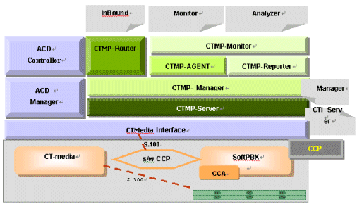 以CCP為基礎的CTMP Suite系統(tǒng)軟件不僅為顧客聯(lián)絡中心準備了多樣化的、便利性的實用功能,而且還提供整合性管理接口與簡易方便的維護服務,此外,該系統(tǒng)軟件還能根據(jù)顧客的要求,在同一平臺上兼容運行IVR、VMS(語音郵件系統(tǒng)-Voice