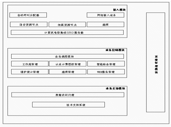 另外從CTI技術(shù)和呼叫中心的角度來看,也應(yīng)當(dāng)實(shí)現(xiàn)適當(dāng)線路數(shù)的自動語音應(yīng)答(IVR)功能,呼叫/業(yè)務(wù)處理數(shù)據(jù)的統(tǒng)計(jì)功能,電話錄音留言功能,對主叫用戶和被叫信息號碼的有效性進(jìn)行檢查的功能,系統(tǒng)管理維護(hù)功能等才能構(gòu)成一個(gè)完整的呼叫中心系統(tǒng)。