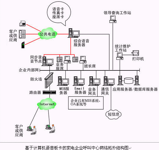 對于大中型的家電企業(yè)呼叫中心系統(tǒng),可選用排隊交換機作為語音接入設(shè)備,保障系統(tǒng)的高可靠性和穩(wěn)定性;