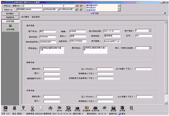 客戶信息包括客戶編號(hào)、客戶名稱、聯(lián)系電話、地址、所屬地區(qū)、地區(qū)編號(hào)、用戶人口數(shù)、樓層等多項(xiàng),接聽客戶呼入電話,由座席代表記錄信息形成檔案,也可采用更為主動(dòng)的呼出方式來確認(rèn)、核實(shí)、補(bǔ)充檔案。