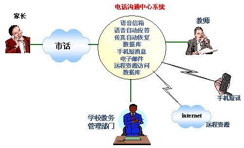 為此,很多學(xué)校都建立了自己的網(wǎng)站來作為對外宣傳和溝通的窗口,同時(shí),不少學(xué)校還建立了校園網(wǎng),但僅僅通過INTERNET來獲取相應(yīng)的學(xué)生信息和學(xué)校信息是不夠的,畢竟不是每個(gè)家長都上網(wǎng)的,就算上網(wǎng)也只是偶爾,不能達(dá)到和學(xué)校經(jīng)常溝通的效果,尤其是在不很發(fā)達(dá)的地區(qū)這種現(xiàn)象尤為明顯。因此學(xué)校與家長的溝通必須建立在一種十分普及的通訊方式基礎(chǔ)上,而當(dāng)前最為普及的通訊方式莫過于電話了。