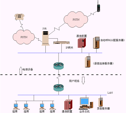 所需設(shè)備只有普通的服務(wù)器和多媒體電腦、網(wǎng)關(guān),無需專用設(shè)備如交換機、語音卡、傳真卡等,這樣不需要專門人員來維護系統(tǒng),大大降低了系統(tǒng)以后維護工作量