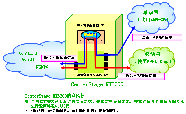 NX3200(以下簡(jiǎn)稱「NX3200」)」上,內(nèi)置了行業(yè)首例運(yùn)營(yíng)商級(jí)寬帶編解碼轉(zhuǎn)換功能。本裝置迅速對(duì)應(yīng)了ITU-T(注2)制定的國(guó)際標(biāo)準(zhǔn)G.711.1(注3)等寬帶編解碼器標(biāo)準(zhǔn),在運(yùn)用移動(dòng)網(wǎng)、固定網(wǎng)的各種語(yǔ)音編解碼器及視頻編解碼器之間,能同時(shí)進(jìn)行大容量通信。本產(chǎn)品即日起開始銷往市場(chǎng)。
