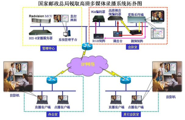 國家郵政總局為國家政府機(jī)構(gòu),主要負(fù)責(zé)郵政業(yè)的發(fā)展戰(zhàn)略、發(fā)展規(guī)劃和有關(guān)政策等諸多職責(zé)。由于機(jī)構(gòu)的特殊性,一些政策、法規(guī)、信息傳播、突發(fā)事件等日常工做必須及時(shí)、準(zhǔn)時(shí)、快速、準(zhǔn)確來完成,所以建設(shè)了視頻會議系統(tǒng)。與此同時(shí),為了能夠更好、更準(zhǔn)確、更及時(shí)、更完整的把會議內(nèi)容所包括的相關(guān)信息及時(shí)傳播與記錄,也增加了可視化信息的傳播與記錄系統(tǒng):深圳銳取多媒體錄播系統(tǒng)。