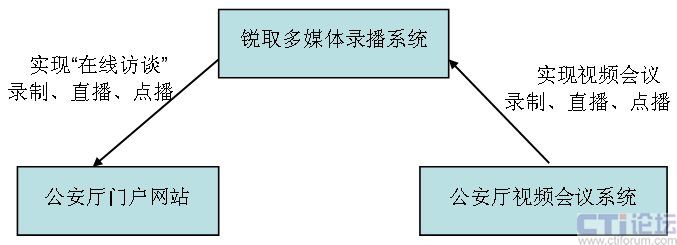 基于上述需求,用戶經(jīng)過調研選用深圳銳取多媒體錄播系統(tǒng)完成上述的功能需求。通過銳取多媒體錄播系統(tǒng)實現(xiàn)福建省公安廳視頻會議系統(tǒng)和門戶網(wǎng)站的完美融合,將“在線訪談”節(jié)目的演播室通過視頻會議系統(tǒng)延伸到基層。