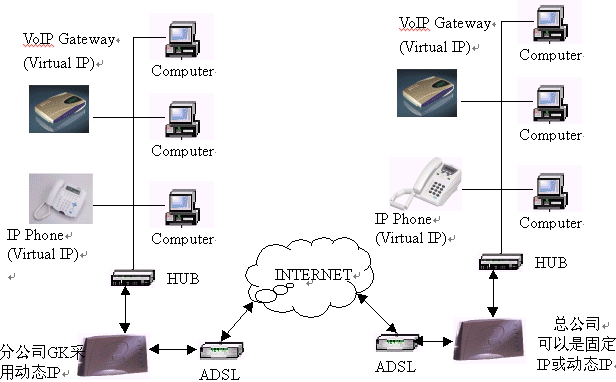 二、應(yīng)用說明:完全基于企業(yè)現(xiàn)有網(wǎng)絡(luò)環(huán)境架設(shè)VOIP系統(tǒng),企業(yè)的各分支機(jī)構(gòu)只需申請ADSL寬帶網(wǎng)絡(luò)(有條件的企業(yè)可申請專線及固定IP地址,則系統(tǒng)完全獨(dú)立),安裝晶卡開發(fā)的NOZA網(wǎng)守、IP話機(jī)或USB手柄電話,就可實(shí)現(xiàn)免費(fèi)通話。