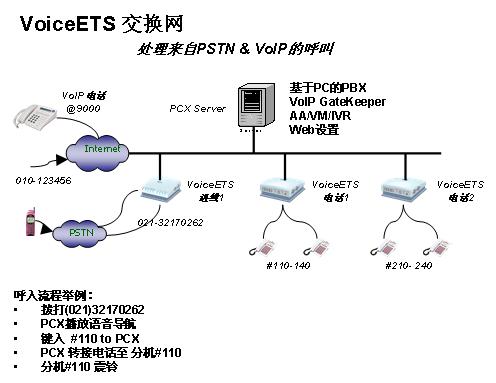 。。VoiceETS,是架構(gòu)在企業(yè)局域網(wǎng)絡(luò)上的電話系統(tǒng),無須傳統(tǒng)電話交換機(jī),無須附加的IVR系統(tǒng)和VOIP網(wǎng)關(guān),以較低成本和較高的集成性,完成幾乎從電話交換機(jī)和VOIP整合到IVR、IP呼叫中心等所有企業(yè)級(jí)應(yīng)用。