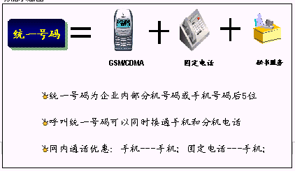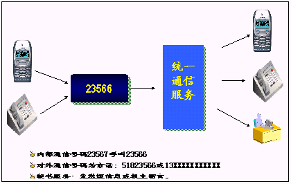 鐵路內部員工可以統(tǒng)一所有的通信工具,只使用一個號碼,一次呼叫便可以完成通信,使通信更加簡單、可靠?梢詫崿F(xiàn)換機換網(wǎng)不換號,用戶獲得一個終身的聯(lián)系號碼,用戶無論更換任何通信工具,聯(lián)系號碼和方式不會改變。例如:在路局領導找下屬的時候,只需要撥打他的統(tǒng)一號碼,便可以直接找到他。不必考慮他是否在外出還是在辦公室,是否更換了手機號碼。統(tǒng)一號碼就像他員工號碼,始終不變,即撥即通!