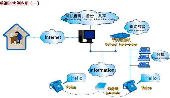 錄音記錄應(yīng)當能夠方便地通過多種途徑回放,實現(xiàn)對錄音記錄資料的利用,這也是用戶配置電話錄音系統(tǒng)的最主要目的。回放可以通過我們公司開發(fā)生產(chǎn)的選件手持播放器回放,通過網(wǎng)絡(luò)回放,通過聲卡在其它計算機上回放等多種方式來實現(xiàn)。