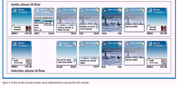 在最近一次諾基亞委托進行的IP多媒體研究中顯示,消費者喜歡增加了視頻共享的視頻電話,有趣的手機外觀被看作是非常重要的,而視頻共享也被認為是非常有用的,被看作是基于視頻短信的MMS的一個明顯的進步。消費者喜歡去共享的時刻是:例如在假期里,購物、舉家外出旅行,或者是一個周末的夜晚。通過視頻共享來展現(xiàn)你的位置及同行人員,可以確保人身的安全。同樣,視頻共享技術(shù)也可以應(yīng)用于商業(yè)領(lǐng)域,如財產(chǎn)狀態(tài)監(jiān)視和遠程檢查野外工作等。