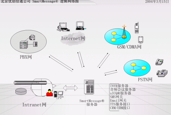 完全自主版權(quán)的 SmartMessage Pro®是專為企業(yè)級(jí)使用單位設(shè)計(jì)的通信服務(wù)平臺(tái),提供多種通信一體化解決方案,如統(tǒng)一消息、語(yǔ)音郵件、交互會(huì)議、IVR、手機(jī)短信/傳真/電話服務(wù)及呼叫中心,這些應(yīng)用可無(wú)縫集成在一套標(biāo)準(zhǔn)化平臺(tái)上,是全方位實(shí)施CRM系統(tǒng)和電子商務(wù)服務(wù)解決方案的重要組成。
