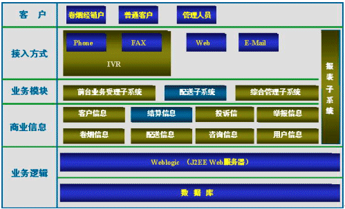 華泰貝通與南通珠峰電腦公司合作建設(shè)的南通煙草客戶服務(wù)中心系統(tǒng),覆蓋南通市和下屬六個縣市,實現(xiàn)了電話訪銷、電子結(jié)算、物流配送等業(yè)務(wù)功能,是煙草銷售業(yè)電子商務(wù)的典型案例,南通煙草在現(xiàn)有電子商務(wù)平臺基礎(chǔ)上,將進一步發(fā)展與完善系統(tǒng)功能,建立一個穩(wěn)定實用、數(shù)據(jù)高度共享、緊扣業(yè)務(wù)需求及調(diào)控能力強的高水平信息系統(tǒng),以成熟的客戶關(guān)系管理,實現(xiàn)優(yōu)質(zhì)的個性化客戶服務(wù);以完善的商業(yè)智能化系統(tǒng),提供敏捷高效的經(jīng)營分析與決策支持;以科學的倉儲配送資源管理,實現(xiàn)物流效益的最大化。