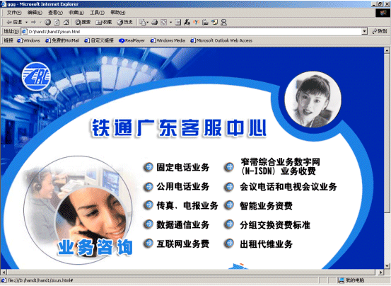 包括:公司介紹、網(wǎng)絡(luò)情況、業(yè)務(wù)介紹、受理手續(xù)、資費(fèi)標(biāo)準(zhǔn)、營(yíng)業(yè)網(wǎng)點(diǎn)、電信行政法規(guī)、電信行業(yè)管理、地方性法規(guī)、電信信息及知識(shí)等內(nèi)容。