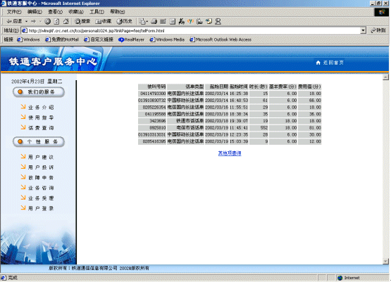 - 繳費(fèi)情況查詢:包括用戶費(fèi)用總額、繳費(fèi)金額、欠費(fèi)金額、繳費(fèi)日期
